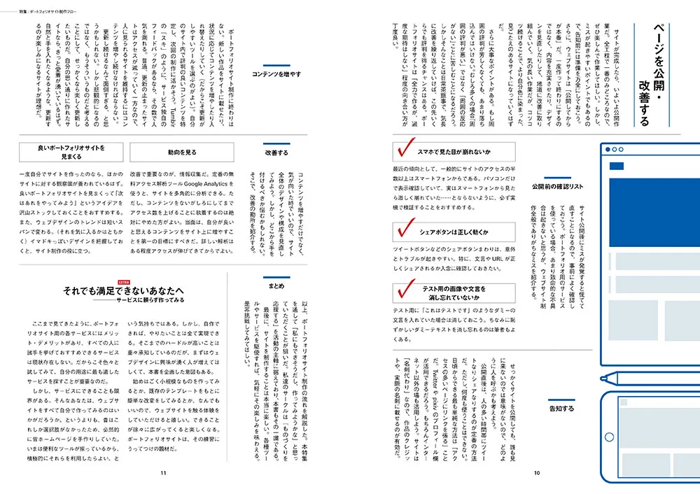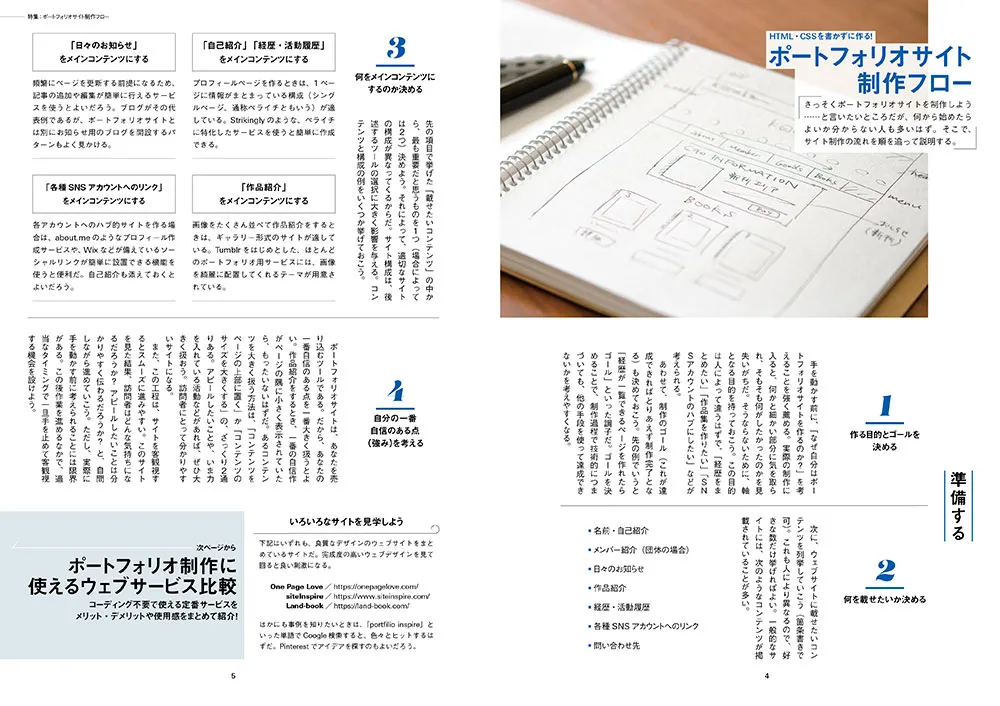 「ポートフォリオ(作品集)サイトをつくる」を特集した同人誌。サイトを制作したことがない方向けに、コーディングが不要な方法を中心に解説します。